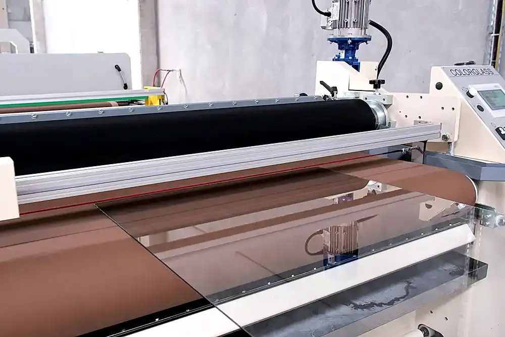 Rollmac marka boya makinasında renksiz veya renkli düzcam üzerine serigrafik/rulo baskı yöntemi istenilen RAL çeşidiyle emaye boya uygulanarak ve temperleme işlemi yapılarak üretilen camlardır.